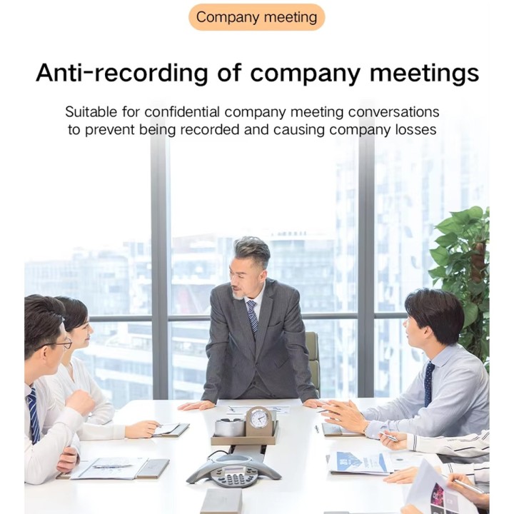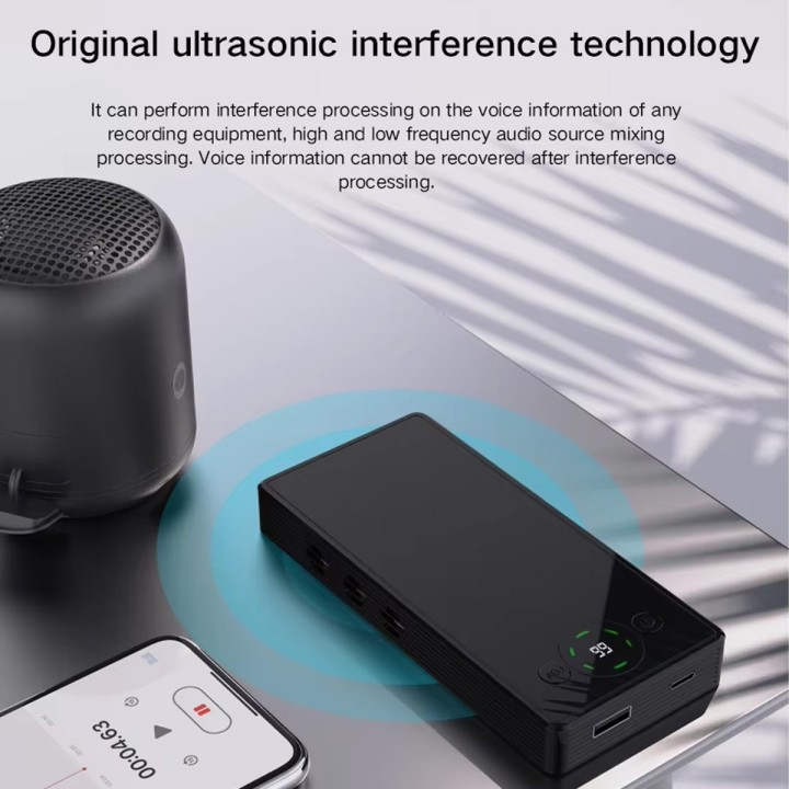 Proteja sus comunicaciones privadas con el AudioShield Pro, la solución antigrabación avanzada diseñada para uso profesional y personal. Nuestra tecnología de interferencia ultrasónica propietaria procesa la información de voz mediante la mezcla de audio de alta y baja frecuencia, interrumpiendo permanentemente las grabaciones de cualquier dispositivo mientras hace que los datos interceptados sean imposibles de recuperar. Este dispositivo mejorado ofrece una cobertura integral de 300° a través de tres salidas direccionales (izquierda, intermedia, derecha) y dos ajustes de velocidad personalizables para una protección personalizada. El control remoto inalámbrico incluido permite una operación discreta desde 1-50 metros de distancia, mientras que la interfaz intuitiva cuenta con pantallas claras de energía y dirección de salida. Perfecto para asegurar reuniones de empresa contra el espionaje corporativo, proteger negociaciones comerciales, salvaguardar conversaciones confidenciales y garantizar la privacidad personal. El AudioShield Pro es su defensa confiable contra la grabación no autorizada en cualquier escenario sensible. Características clave: Interferencia ultrasónica de cobertura completa de 300° Tecnología de mezcla ultrasónica original (Interrupción de audio irreversible) Control remoto inalámbrico (Rango de 1-50 metros) Tres direcciones de salida ajustables Ajustes de doble velocidad Protección anti-teléfono/video/lápiz de grabación Operación simple y lista para usar Solución de seguridad empresarial profesional